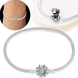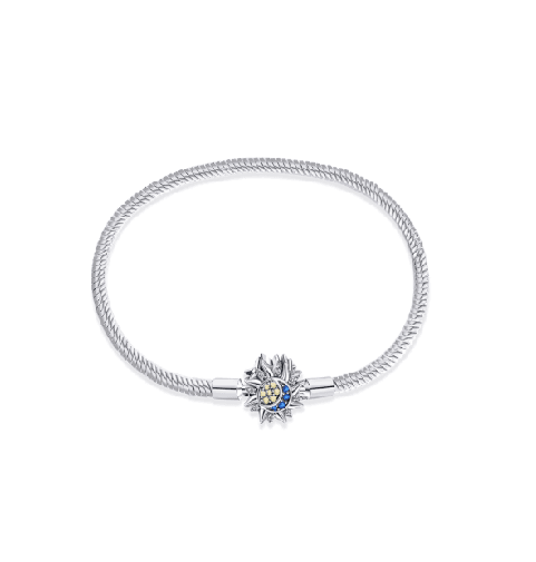 Această brățară se remarcă prin talismanul inspirat cu simbolurile astrale ale Soarelui și Lunii, reprezentând armonia cutre energie și calm, zi și noapte. Forma atent conturată și detaliile fine creează un accesoriu expresiv, cu o estetică aparte.