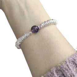 Această brățară reglabilă, combină designul minimalist cu un detaliu distinctiv: un cerc mov strălucitor, simbol al creativității și echilibrului interior. Șnurul ajustabil o face confortabilă și ușor de purtat, fiind un accesoriu versatil potrivit pentru orice ocazie.