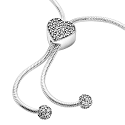 Această brățară tip Pandora Moments este concepută ca suport pentru talismane, având un design simplu și bine definit care pune în valoare charmurile adăugate. Structura sa flexibilă permite atașarea ușoară a elementelor decorative, oferind libertate în crearea unui stil personal.