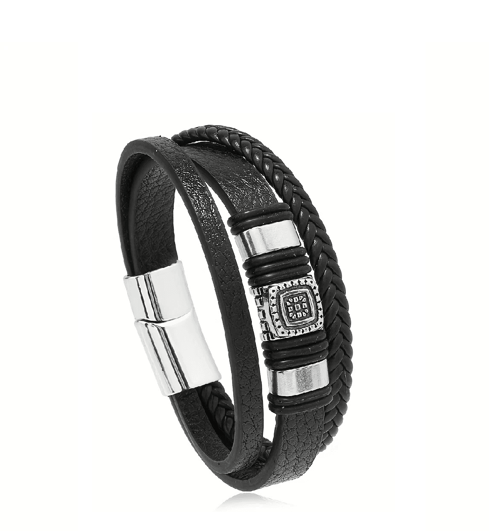 Inspirată cu energia străzilor și geometria orașului, această brățară este creată pentru bărbatul care vrea să își exprime personalitatea prin accesorii cu atitucue. Confecționată manual cu piele PU de calitate, cu detalii împletite și un element central cu model geometric pătrat-floral, este alegerea perfectă pentru un look street, casual sau punk elegant.