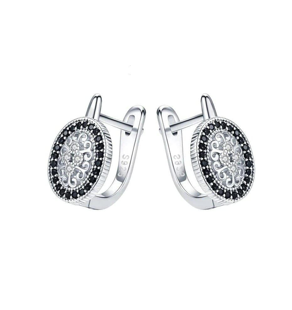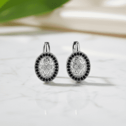 Acești cercei Diora Classic impresionează prin forma lor rotundă și ornamentul central fin lucrat, inspirat cu motive clasice. Conturul accentuat cu pietre în nuanță închisă creează un contrast sofisticat, evidențiind detaliile decorative și adăugând profunzime designului.