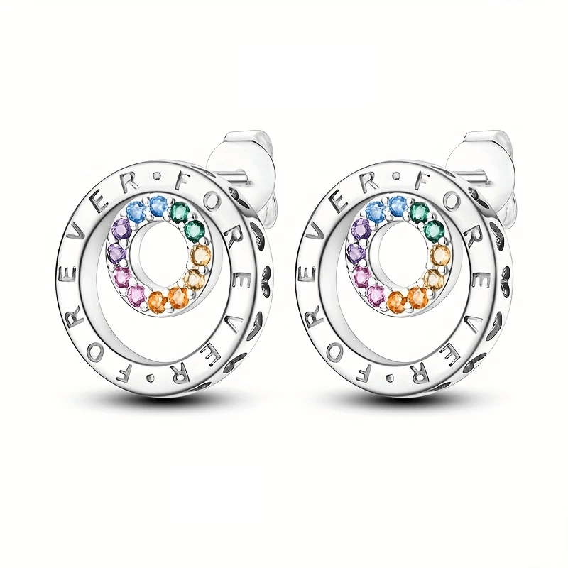 Cercei Dublu Inel Eternitate cu Zirconiu – Eleganță pentru Zile Speciale și de Zi cu Zi