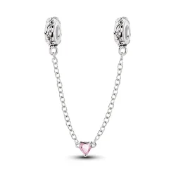 Completează-ți brățara cu un accesoriu elegant și util, conceput pentru a oferi atât protecție, cât și rafinament. Acest charm cu lanț de siguranță este decorat cu motive florale fine și are un detaliu central sub formă de inimă roz, adăugând o notă romantică și feminină oricărei brățări.