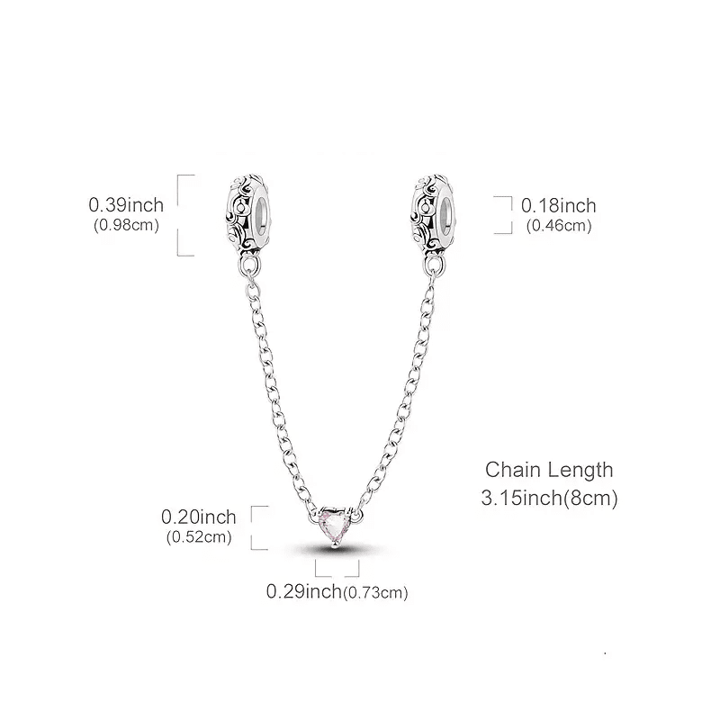 Protecție practică – Lanțul asigură brățara împotriva deschiderii accidentale, menținând siguranța charmurilor.