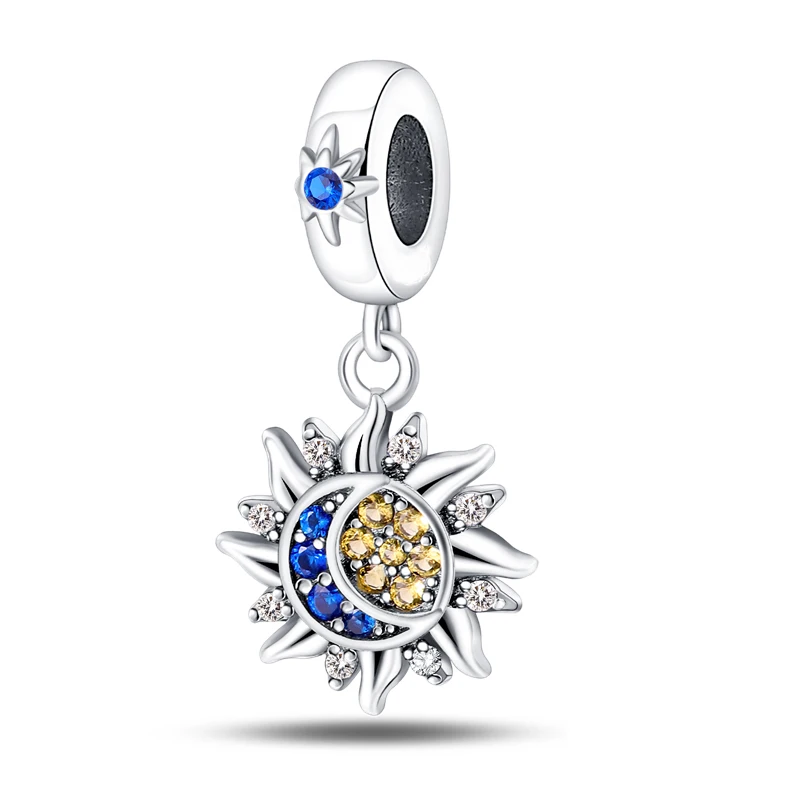 Charm cu Argint cu Soare și Lună și Cristale Colorate – Eleganță Astrală
