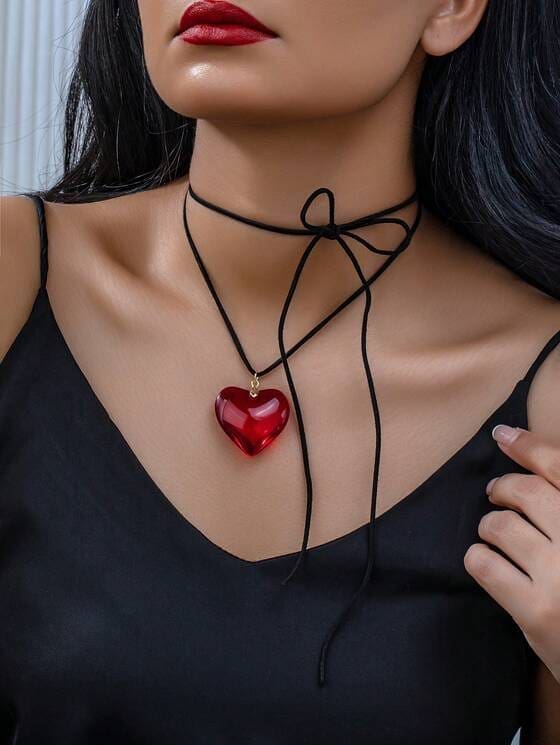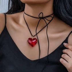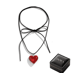Un simbol al pasiunii și eleganței, acest colier este alegerea perfectă pentru femeia care își exprimă sentimentele prin detalii fine. Cu un pandantiv în formă de inimă, realizat cu sticlă rafinată, și un șnur textil ajustabil, acest accesoriu adaugă o notă de mister și romantism oricărei ținute.