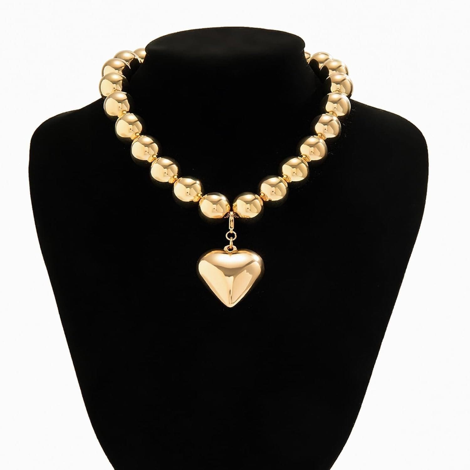 Colier statement cu pandantiv inimă și mărgele geometrice – stil punk, perfect pentru orice ocazie