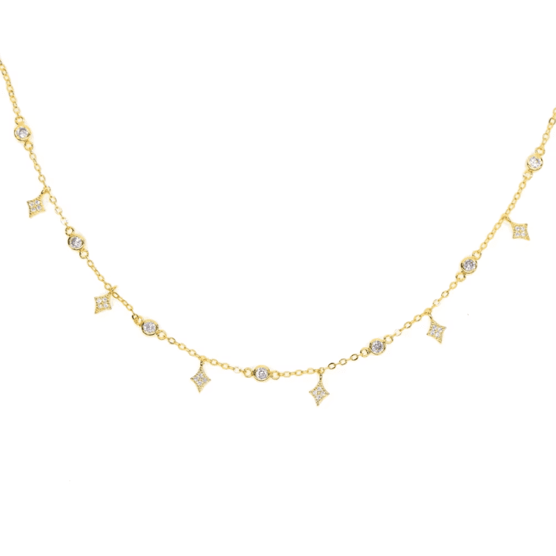 Acest colier impresionează prin pandantivul în formă de stea, decorat cu zirconiu cubic care reflectă subtil lumina. Designul delicat creează un efect luminos și elegant, inspirat cu frumusețea cerului înstelat.