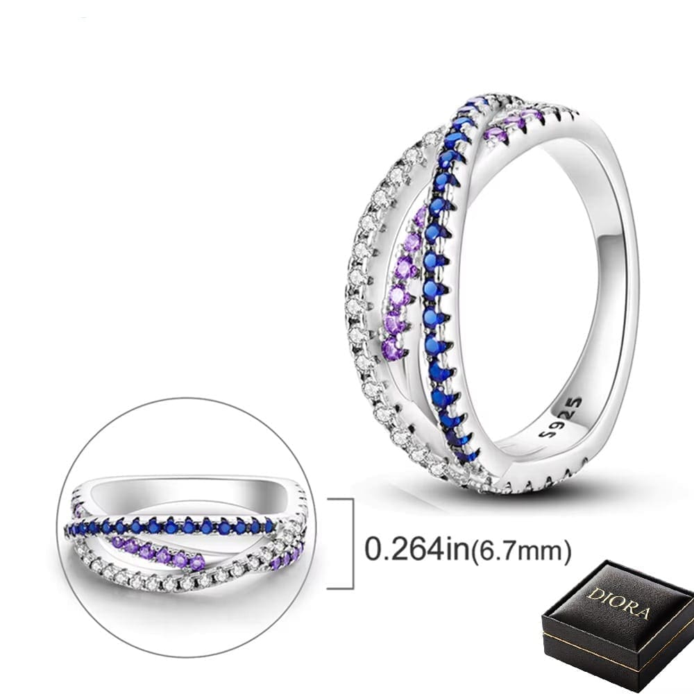 Inspirat de frumusețea spectaculoasă a aurorei boreale, inelul Aurora by Diora combină eleganța argintului cu nuanțele fascinante de albastru și mov, creând un accesoriu unic și rafinat.
