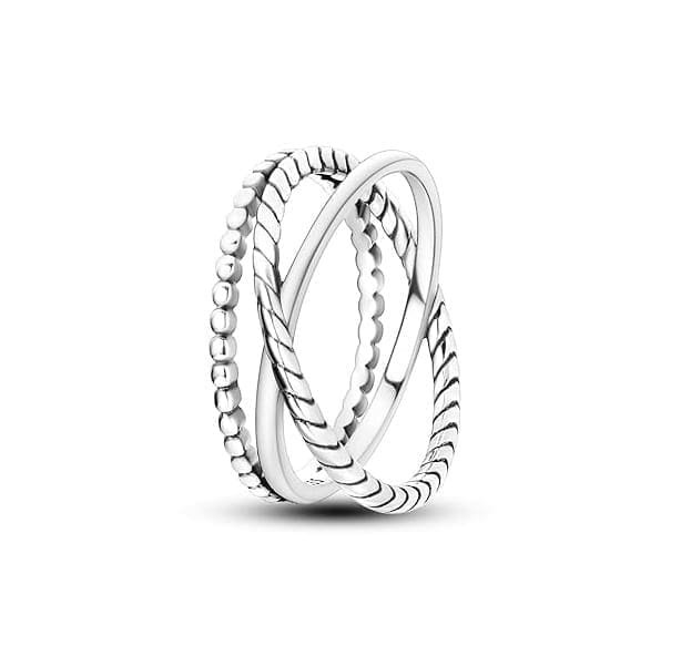 Un inel cu personalitate, format cu trei benzi distincte care se completează perfect: una cu bile lucioase, una răsucită și una netedă, toate în nuanță argintie. Acest design împletit creează un efect vizual spectaculos și oferă un look modern, sofisticat și ușor de purtat zi de zi.